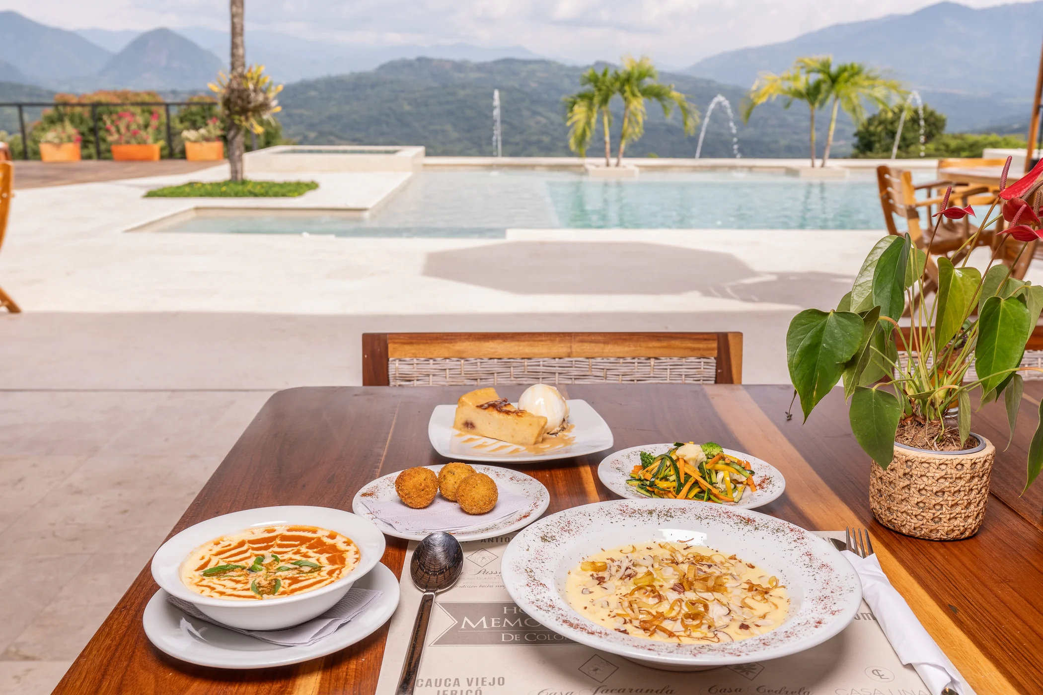 Depending on occupancy, it is buffet style or a la carte. With fresh, local and delicious ingredients, such as; Orange juice from the Finca, Coffee from Támesis, Corn Arepas from Palermo, Chorizos from Palermo, Homemade Bread, Cheese from Palermo, House Buñuelos, Honey from the region, among others.
