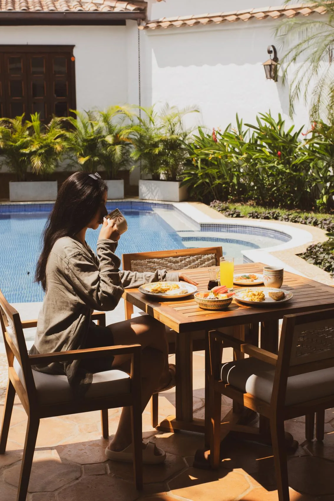 Restaurante en el Hotel y Deck en el Patio con servicio de Bar. Ofrecemos estas experiencias culinarias: