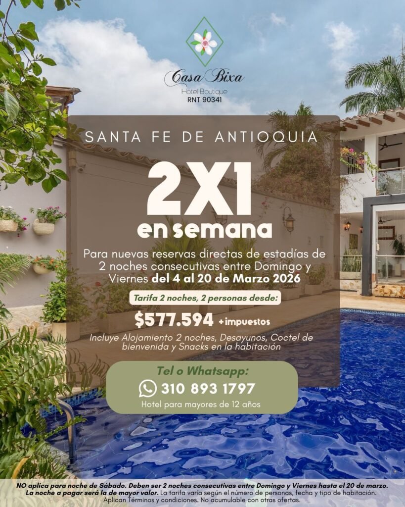Si estás buscando promociones en hoteles boutique en Antioquia o planes especiales en Jardín, Santa Fe de Antioquia, Cauca Viejo o Támesis, aquí encontrarás opciones que se adaptan a distintos estilos de viaje. Ya sea para una ocasión especial, una sorpresa o simplemente una pausa del ritmo cotidiano, nuestros planes están diseñados para ofrecer comodidad, exclusividad y experiencias auténticas.